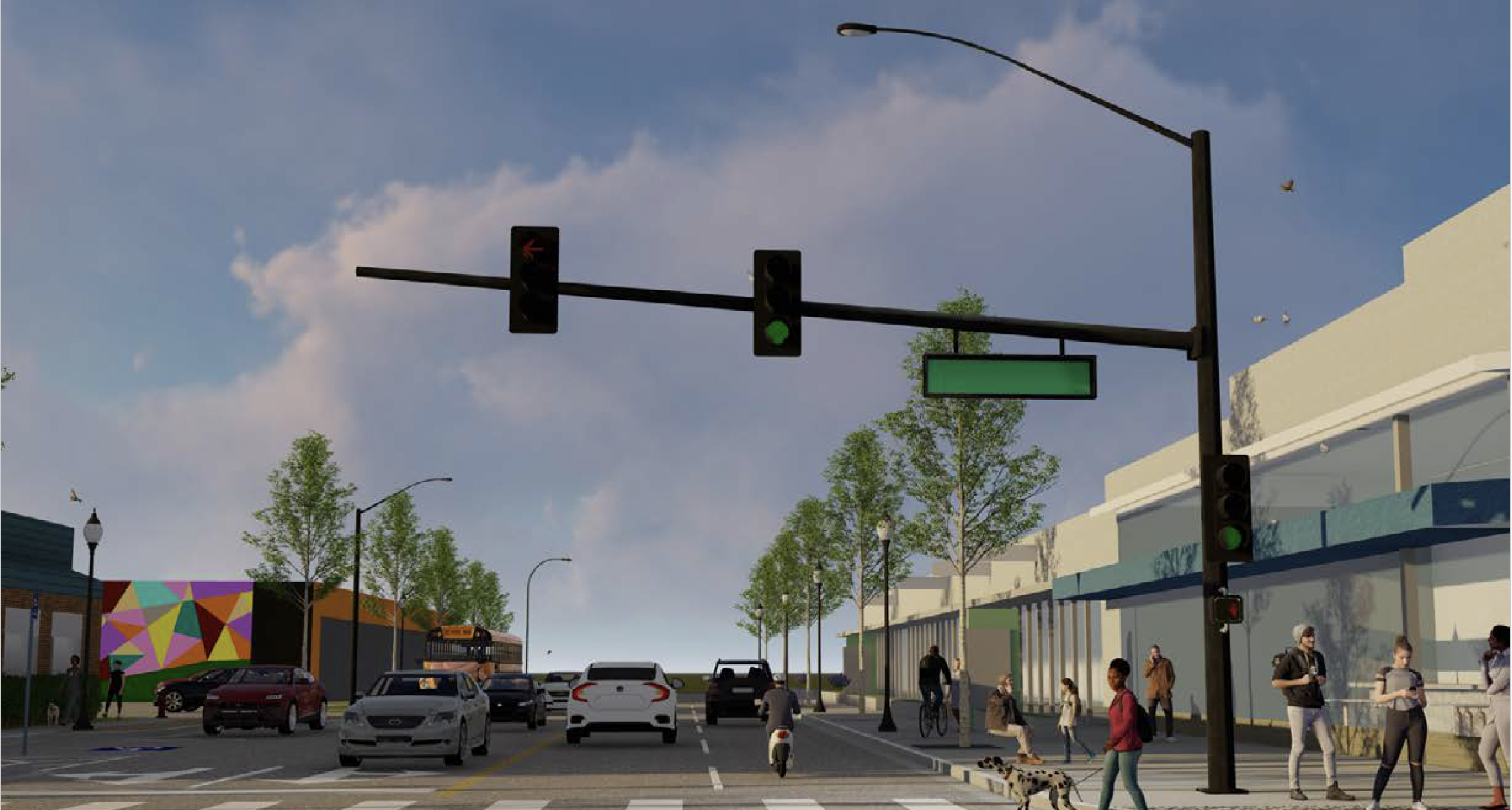 The overall goal of this project is to create a safer, more functional corridor for both pedestrians and drivers. To enhance the pedestrian experience, the center median will be removed.